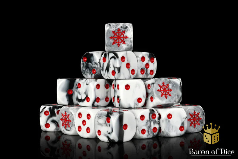 Crafted by Baron of Dice, the Chaos Demon Dice in Tainted Ice features sharp square edges for precise rolls and a distinctive frosted appearance. Designed for serious gamers and collectors, these dice combine aesthetic appeal with reliable performance, making them an excellent choice for enhancing your tabletop experience. pack contains 25 dice.